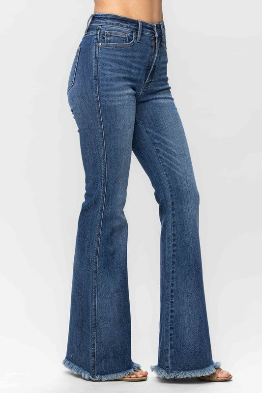 Elevate your style and confidence with our high waist tummy control frayed hem Judy Blue denim, specially designed for plus size women. Made with a high waist and tummy control features, this denim will help accentuate your curves while providing a comfortable, slimming fit. Perfect for any occasion, look and feel your best in our JB denim.