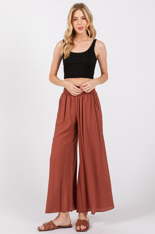 Constructed with a soft, stretchy waistband and wide leg design, our Soft Wide Leg Pants provide both comfort and style. Perfect for everyday wear, these pants offer a flattering fit that will keep you feeling comfortable and confident.
