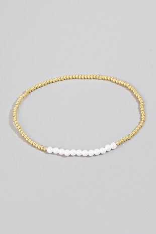 This elegant bracelet features a delicate pearl beaded design and is dipped in 24 karat gold for a luxurious touch. The pearls add a timeless and sophisticated element, perfect for dressing up any outfit. Enhance your style with this high-quality bracelet that exudes elegance and class.