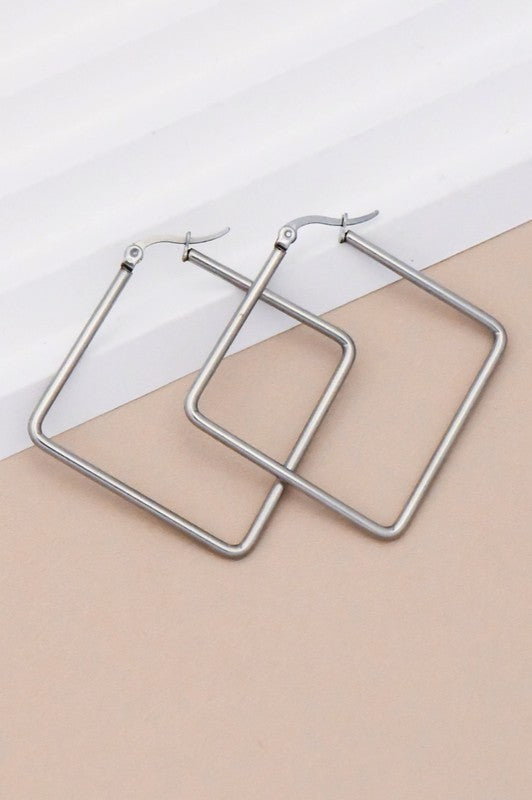 Crafted with high-quality stainless steel, these square hoops provide a hypoallergenic and non-tarnish option for those with sensitive ears. Say goodbye to discoloration and rust with these water-proof earrings. Perfect for everyday wear with style and comfort.
