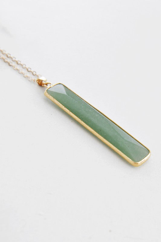 "This Vertical Natural Stone Bar Necklace is the epitome of elegance with its stunning natural stone pendant adorned on a delicate 18k gold chain. Elevate any outfit with this unique and sophisticated piece."
