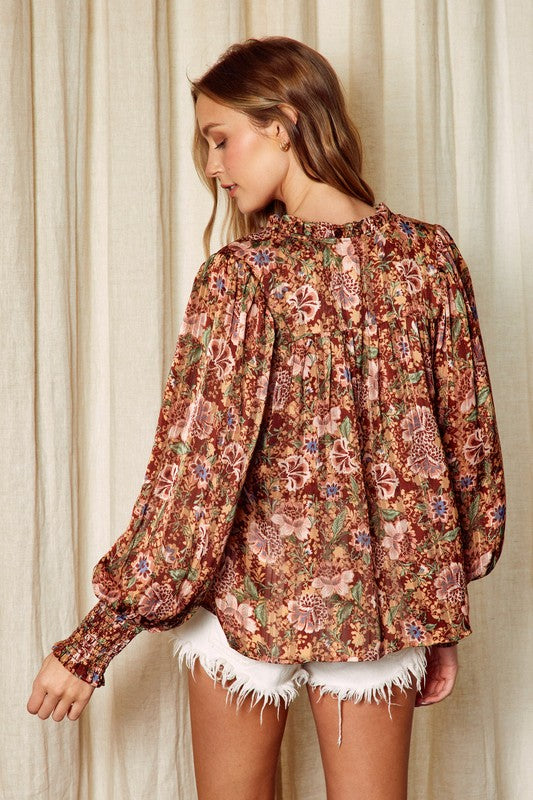 Floral Jacquard Ruffled Top