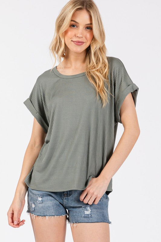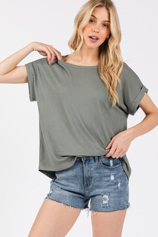Upgrade your wardrobe with our Ribbed Drop Shoulder Crew Neck Top. Made from soft material, this top offers both comfort and style. The ribbed design adds a fashionable touch to any outfit. A must-have for anyone wanting a trendy and cozy look.