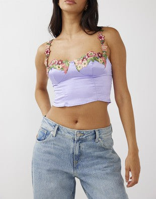 Floral Mesh Lettuce-Edge Thumbhole Top